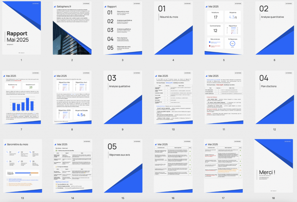 - Rapport mensuel avec analyse des notations et commentaires reçus