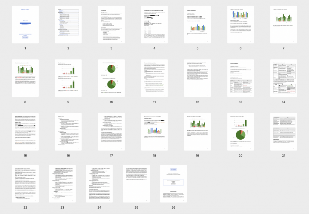 Vous obtenez un rapport réaliste, axé sur la réalité de votre établissement, avec ses points forts et axes d’amélioration, ainsi qu’une analyse des concurrents clés pour soutenir votre développement.